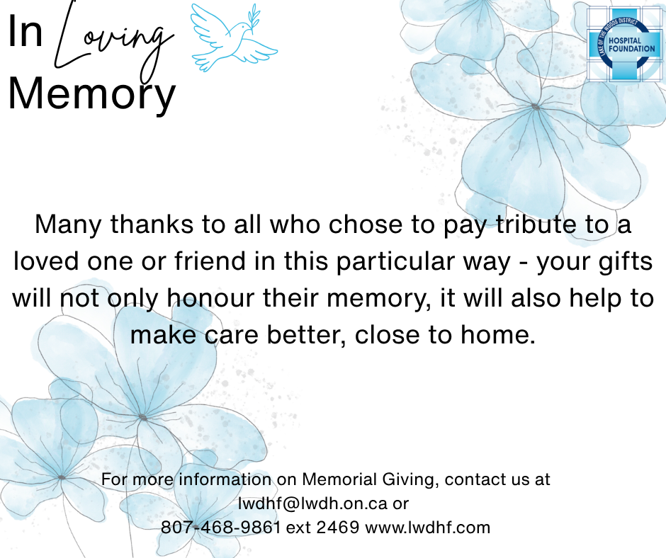 A perfect way to say “Thank you” for the outstanding and compassionate care received your or a loved one received at LWDH.